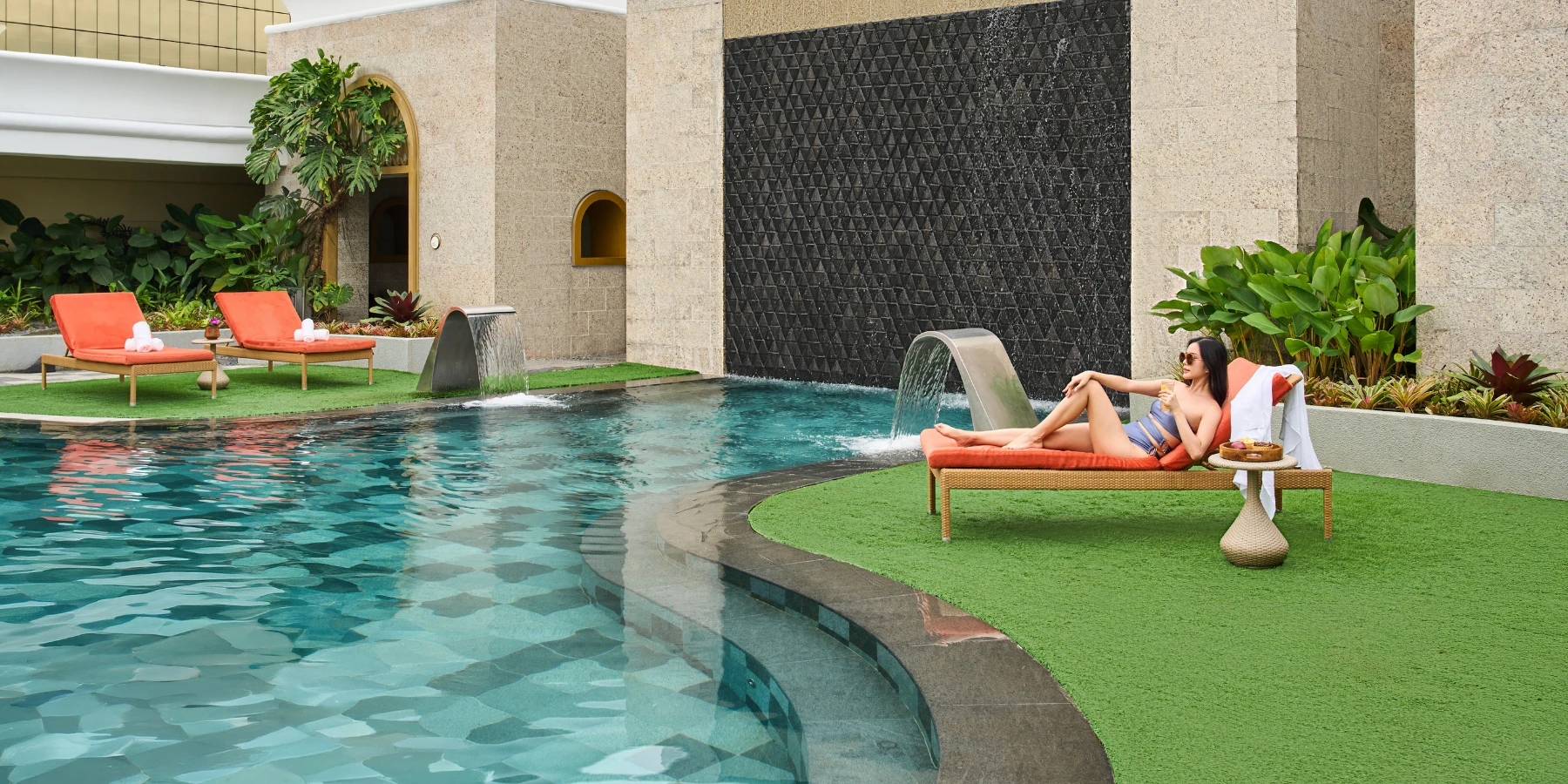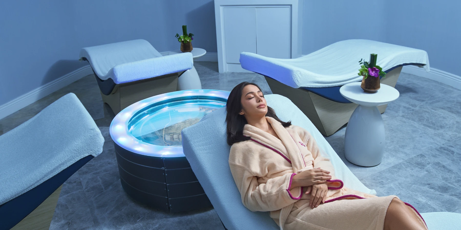It features ten ensuite treatment suites, a barbershop, beauty salon, nail art studio, dedicated relaxation zones, an outdoor relaxation pool, fitness center, tonic bar, aqua therapy facilities, and Southeast Asia’s first Wave Dream relaxation chamber.
