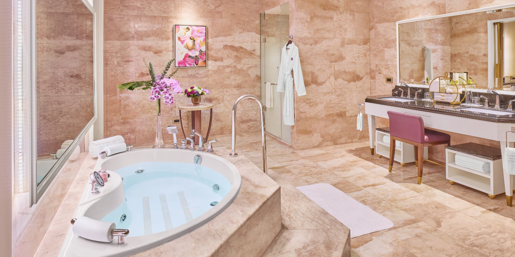 この460㎡の4人用ヴィラは、オカダ・マニラのポディウム・ヴィラの中で最もくつろげる。専属バトラーサービス、室内サウナ、スチームバス、ウォークインクローゼット、プライベートジム、プール、いつでも淹れたてのコーヒーが楽しめるネスプレッソマシーンなど、他では味わえないプライバシーと独占感をご体験ください。