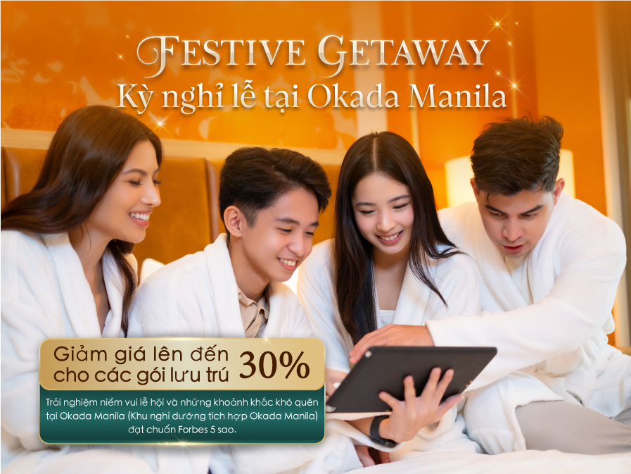 Hãy chào đón mùa lễ hội tại Lễ hội Giáng sinh Okada Manila với những bữa tiệc vui vẻ, dịch vụ chăm sóc sức khỏe và mua sắm tại khu nghỉ dưỡng tích hợp 5 sao Forbes đích thực của Philippines.